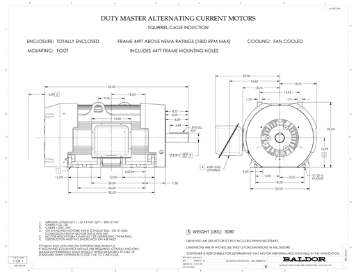 EM4408TR-4, 250 Hp, 1800 RPM, 447T FR, 460 Vac, 3 PH, TEFC, Foot Mounted, General Purpose Motor