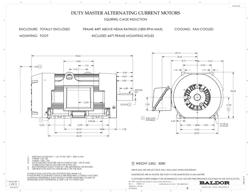 EM44304T-4, 300 Hp, 1800 Rpm, 449T FR, 460 Vac, 3 PH, TEFC, Foot Mounted, General Purpose Motor